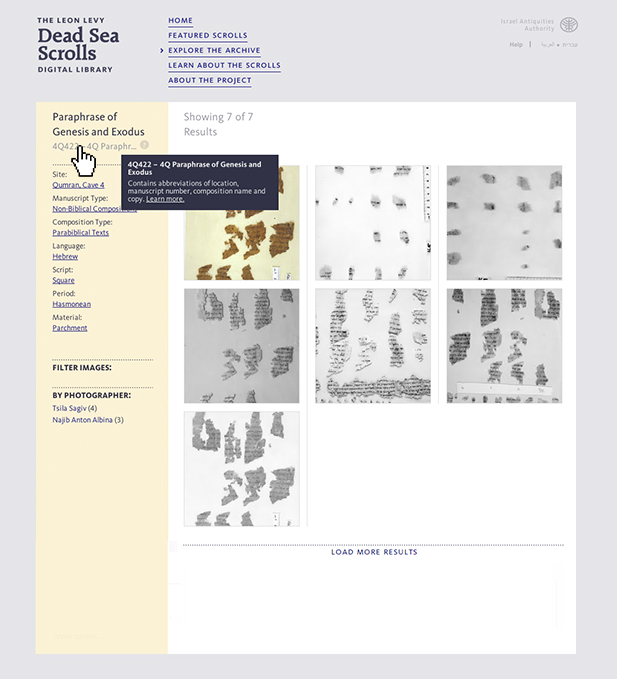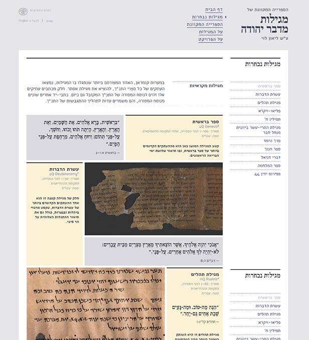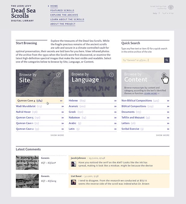 Design and development of the official Dead Sea Scrolls website, commisioned by Google and The Israel Antiquities Authority.